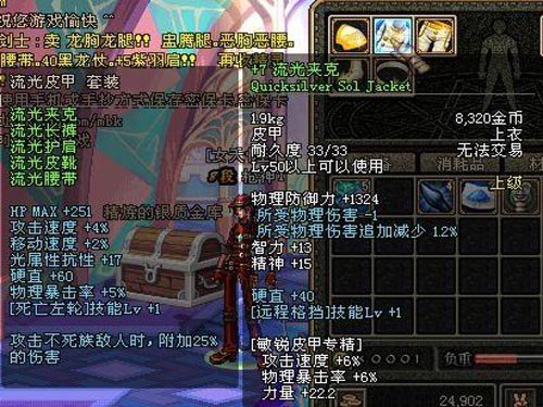对于皮甲职业来说,流光套的地位是无法撼动的。高硬直,高暴击,高攻速的“三高”套装属性直接决定了流光在刷图与PK兼顾全能的卓越表现,也使得流光系装备价格居高不下。除了漫游外,战斗法师们更是相继放弃黑月套,以流光套提升自己的暴力等级。试想一下,一个身穿流光全套手拿天空棍的御姐,以排山倒海之势向对手推出龙刀,那情形是何等的惨烈。