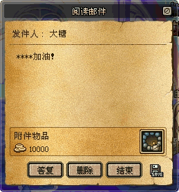 ※ 提示:接收邮件附件中的物品时,直接点击该物品,就可以将其转移到物品栏里。