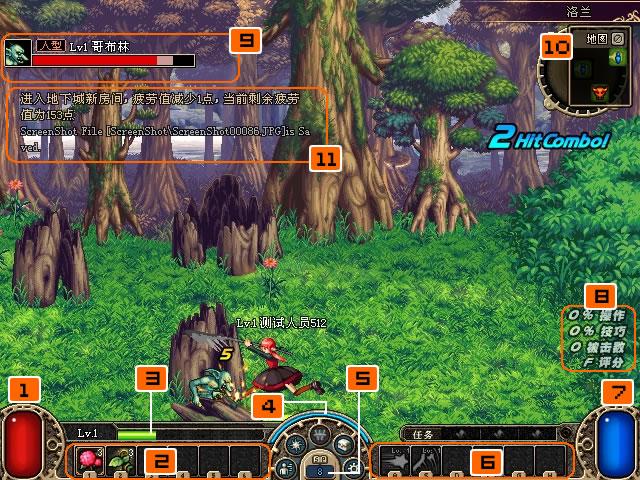 如图,《地下城与勇士》战斗界面相关信息如下: