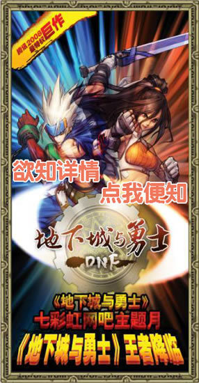 趁着一股来自全世界的奥运风,酷爽一夏的《地下城与勇士》七彩虹网吧主题月活动即将隆重开场!本次活动,除了增进QQ网吧与玩家们的感情,还为参赛的玩家准备丰厚的礼品!好礼多多,刺激连连!活动将于2008年7月30日开始举行,让我们一起来到DNF的世界里,感受酷爽一夏的火热激情吧!随时还有机会得到《地下城与勇士》酷炫抱枕,七彩虹勇士勋章激活码、黑钻体验码等丰富大奖。真是精彩多多,奖品多多,还不赶快参与!
