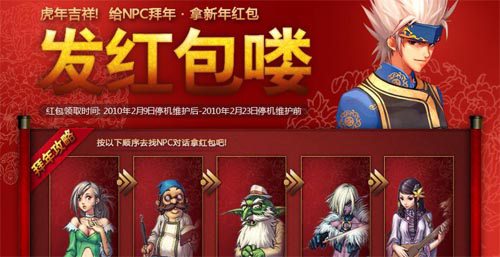 归心似箭的游子;热闹非凡的街市;家家户户的喜庆无不透露着春节的来临,2010年《地下城与勇士》邀你龙腾虎跃过大年,春节五大缤纷活动震撼问世,“黑钻大优惠”,“浪漫情人节”,“赛利亚的祝福晚宴”,“向NPC拜年”还有神秘的新春大礼包,如此诱惑动人心魄,属于你的2010,属于你的DNF,属于你的精彩即将盛妆开启!